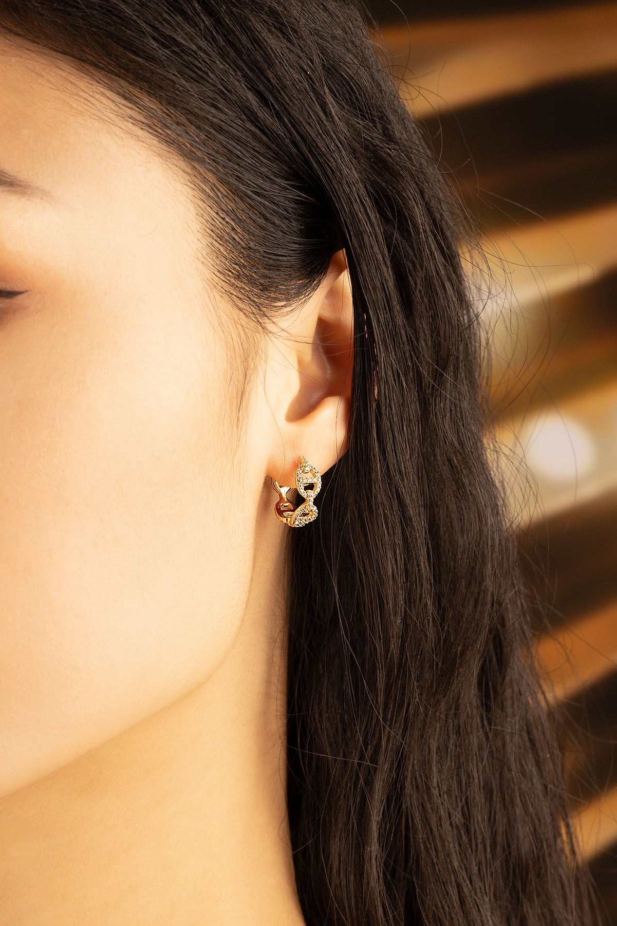 - المواد: سبيكة APM صفراء مصنوعة بنسبة 95% من المواد المعاد تدويرها ومطلية بالذهب عيار 18 قيراط، زركونيا على شكل مكعبات باللون الأبيض، وهي مضادة للبهتان ولا تسبب الحساسية