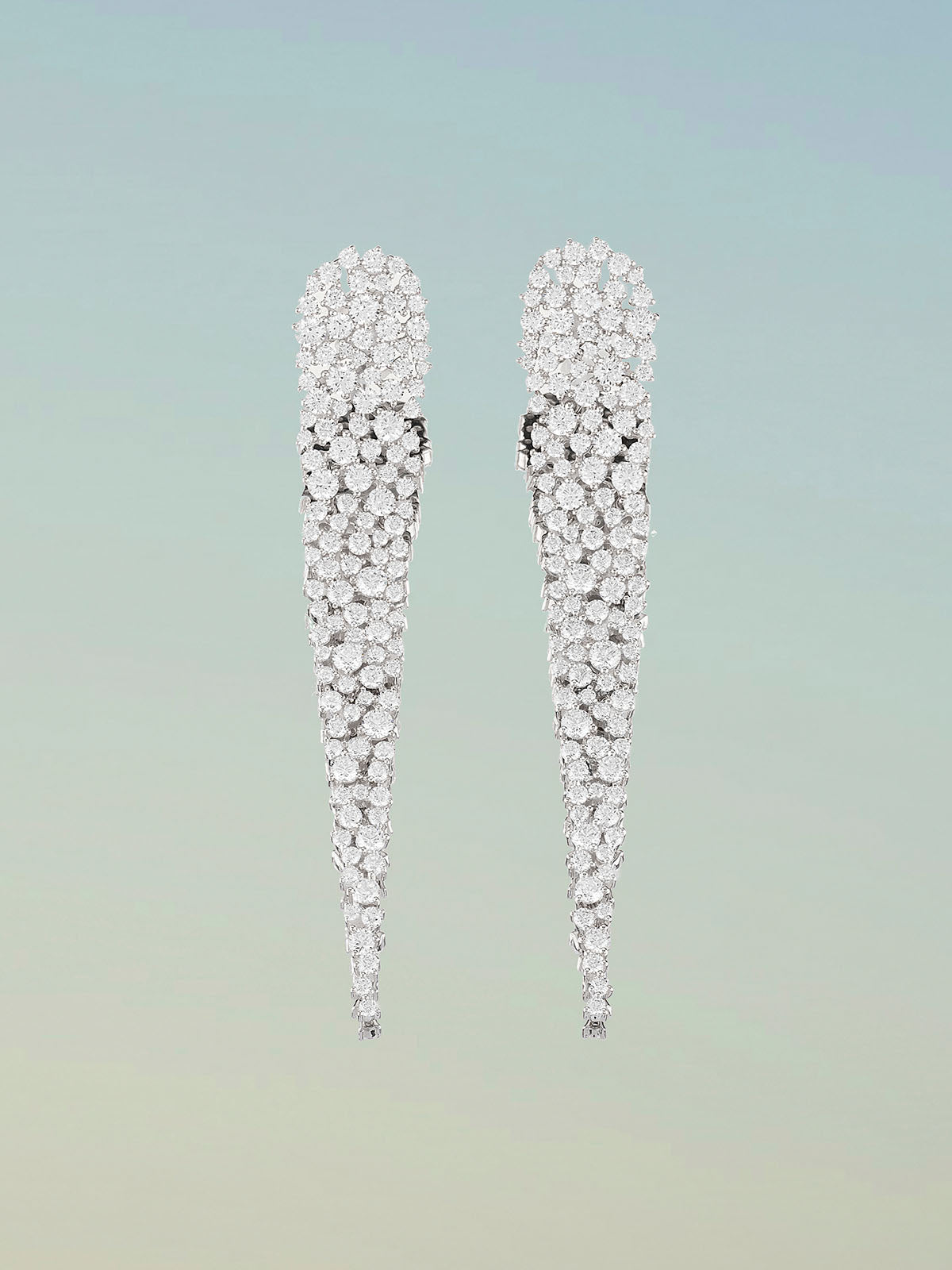 Earrings APM Monaco: silver-tone crystal drop earrings with pavé crystals.APM MONACO statement spark earrings in silver worn on model