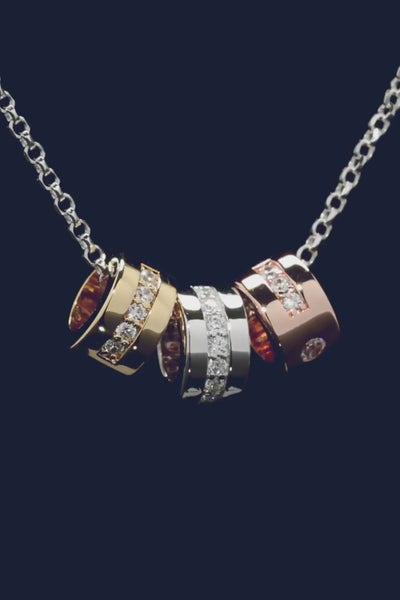 - Material: Plata de ley y aleación rosa de APM, fabricada con un 95 % de materia prima reciclada y bañado en oro de 18 quilates (3 micras), circonitas blancas, antioxidaciones y antialérgico