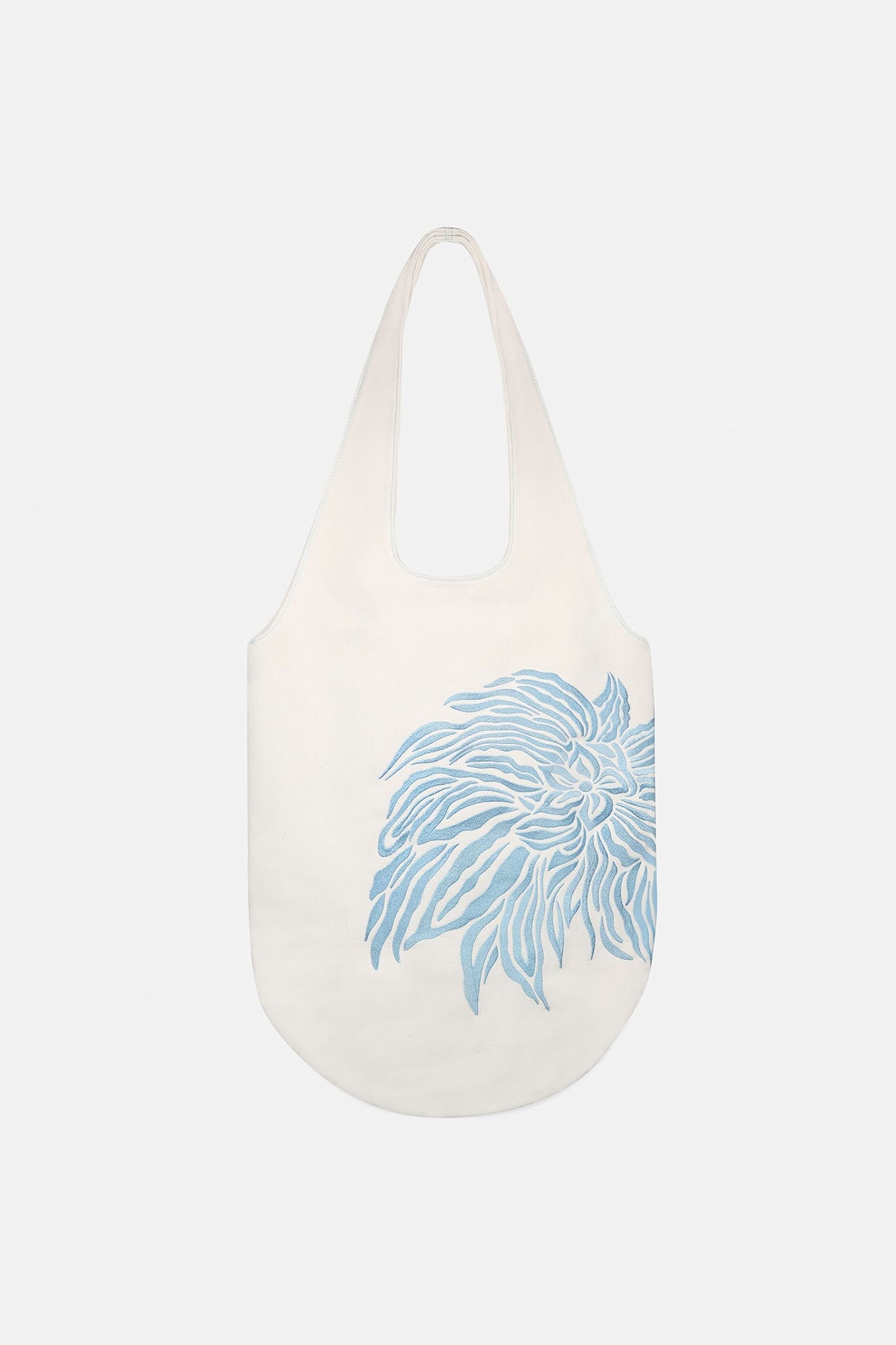 APM MONACO sunglasses with white frame and gray lenses on a white backgroundWoman in a white dress with APM MONACO sunglass against a gray background