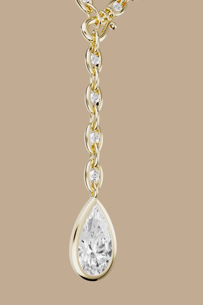 Este versátil collar encarna los tonos dorados de esta colección con detalles pavé. Un diseño atemporal, fácil de llevar y de combinar para cualquier ocasión. La técnica de engaste en la cadena confiere a las piedras un sofisticado efecto flotante.