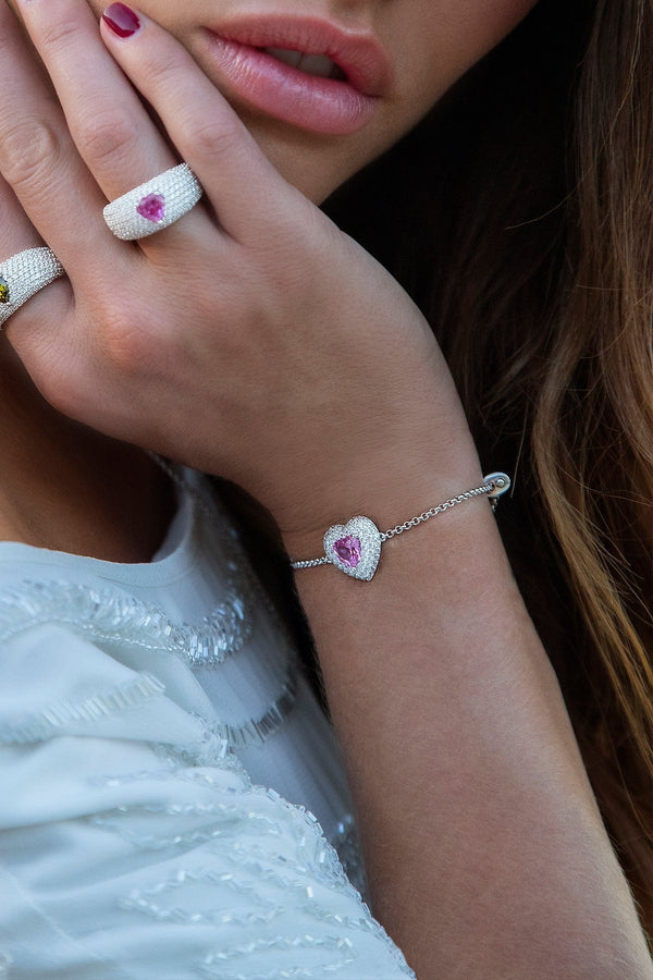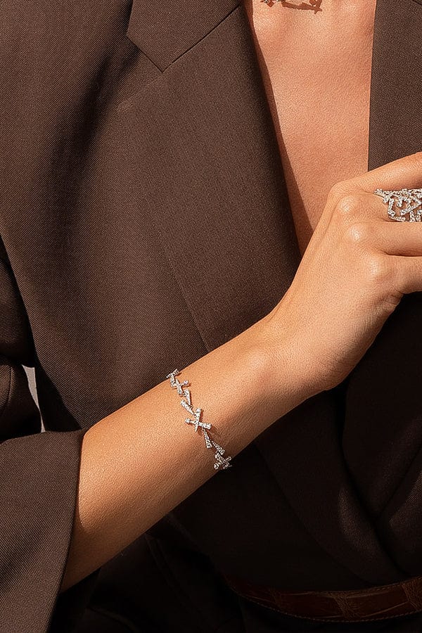 Bracelets APM Monaco, white gold pavé diamond bracelet with white diamonds.APM MONACO spark bracelet in silver worn on hand