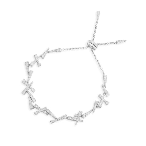 Bracelets APM Monaco adjustable spark bracelet in silver-tone with pavé stones.APM MONACO spark adjustable bracelet in silver on a person's wrist against a soft white background