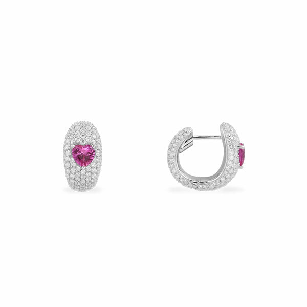 Earrings APM Monaco mini pavé hoop earrings in white, featuring pavé crystals on slender hoops.Earrings APM Monaco, white gold hoop with a simple, classic design.