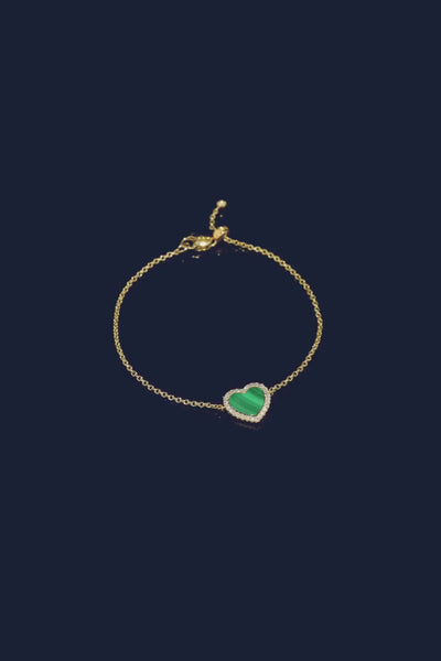 Esta pulsera está fabricada por APM con una aleación amarilla y chapada en oro de 18 k en 3 micrones. Empavesada con circonitas blancas cúbicas y decorada con malaquita.