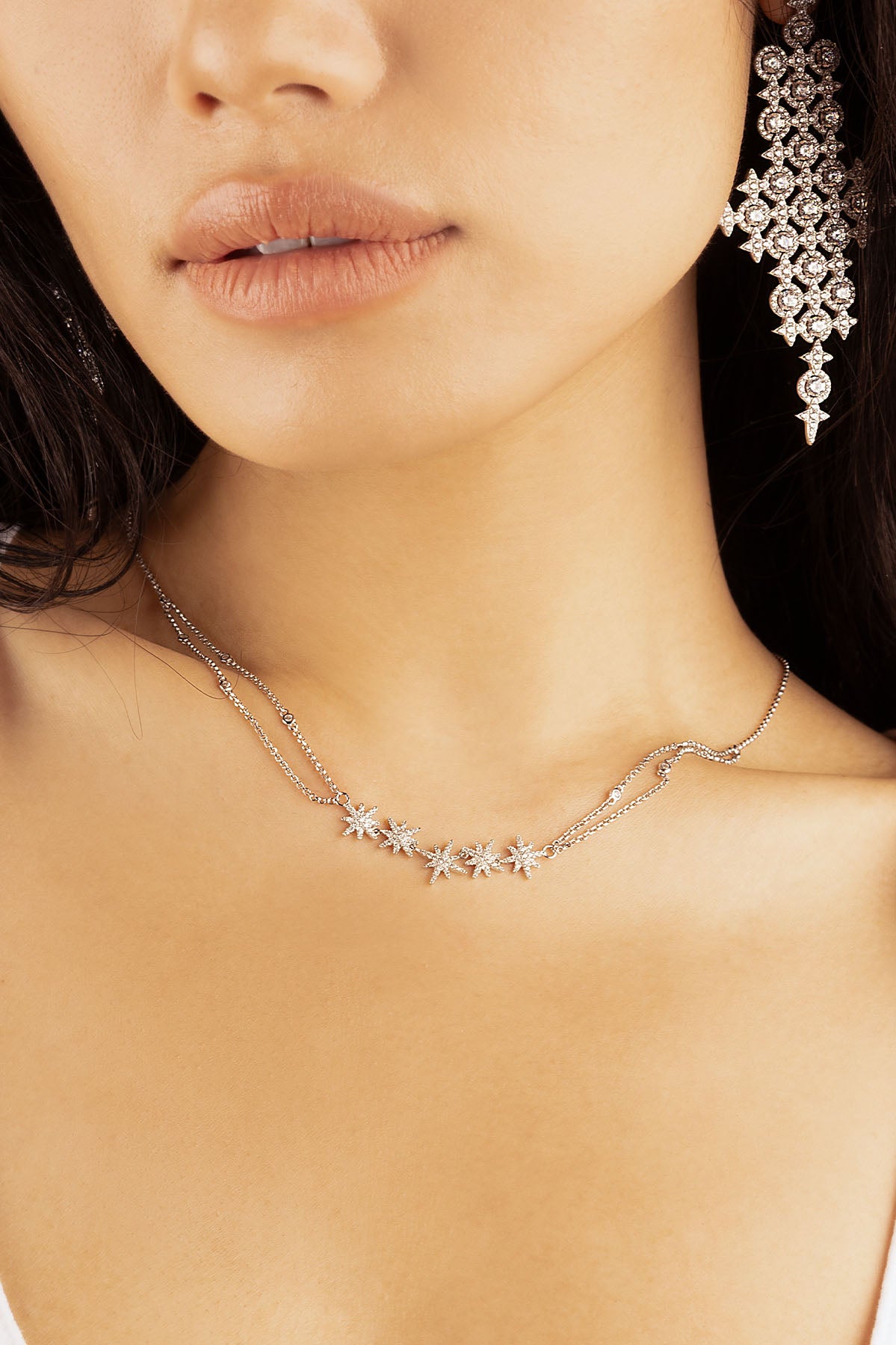 Ce collier fabriqué à la main en argent sterling est serti micro-pavé d'oxyde de zirconium.