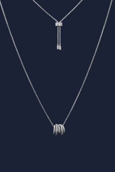 Ajoutez une touche élégante à votre style avec ce collier aux anneaux sertis. Portez-le avec d'autres bijoux APM pour créer votre propre look.