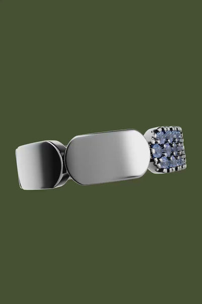Les pierres bleues complètent avec élégance le design de cette bague et créent un contraste unique.