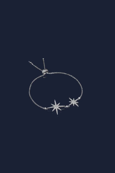 Perfectionnez votre look avec ce bracelet double Météorites en argent et serti de pierres blanches. Inspiré du ciel étoilé méditerranéen et avec une longueur ajustable, il complètera parfaitement toutes vos tenues.