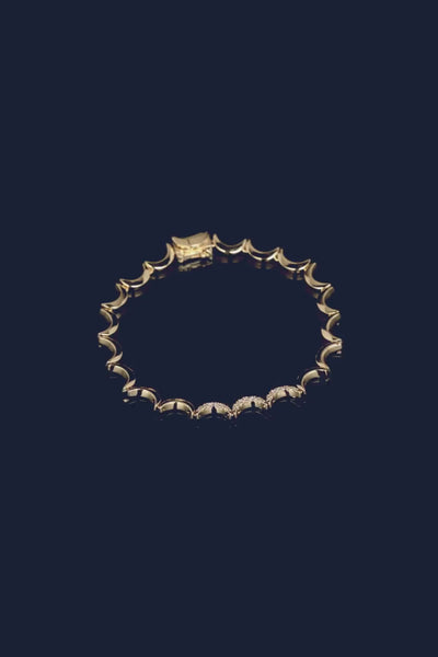 Ce bracelet est fabriqué avec l'Alliage APM et plaqué Or Jaune 18 carats. Il est serti micro-pavé d'oxyde de zirconium.