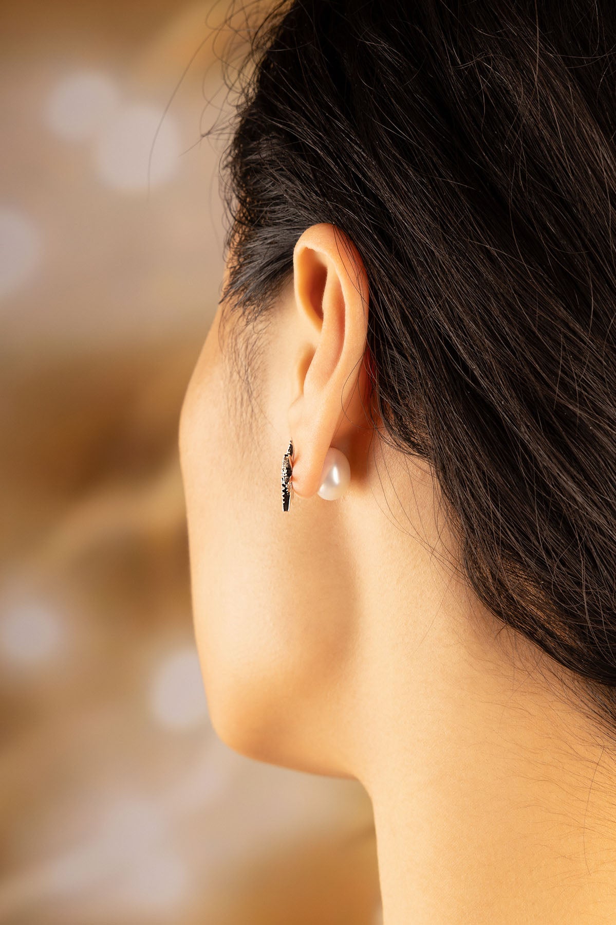 Ces boucles d'oreilles sont fabriquées en argent 925 millièmes. Elles sont serties micro-pavé d'oxyde de zirconium blanc et orné de perles d'eau douce.