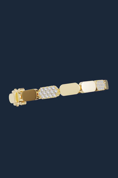 Questo braccialetto realizzato con la lega gialla APM e placcato in oro 18 carati è microincastonato con zirconi bianchi.