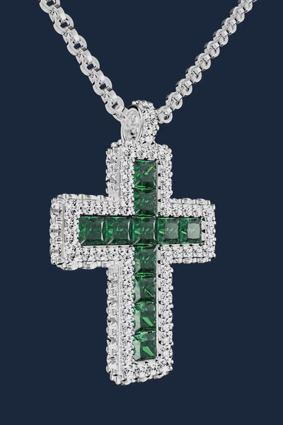 Collana regolabile in pavé con croce verde