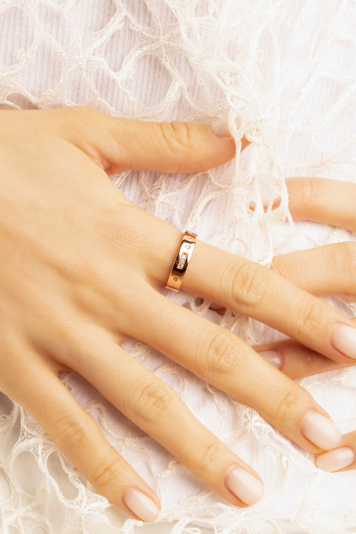 Questo anello è realizzato in APM Alloy rosa e ha uno strato placcato in oro 18k di 3 micron.