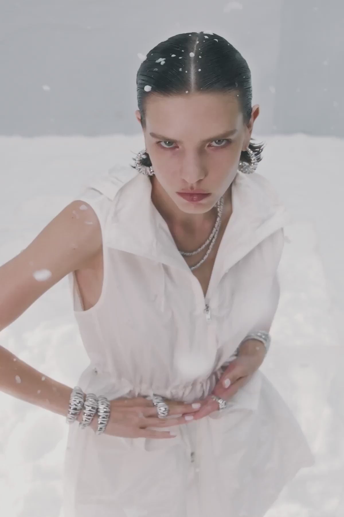 Infatti, ogni pezzo contiene all'incirca 300 pietre, per lo più zirconi o perle d'acqua dolce. L'argento utilizzato, sterling 925, proviene principalmente da fonti riciclate.