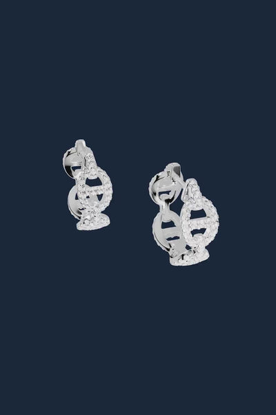 手作業で仕上げたスターリングシルバー製のピアス。ホワイト キュービックジルコニアがあしらわれています。