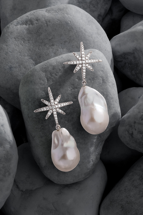 メテオライト スタッズ パール付き - シルバー