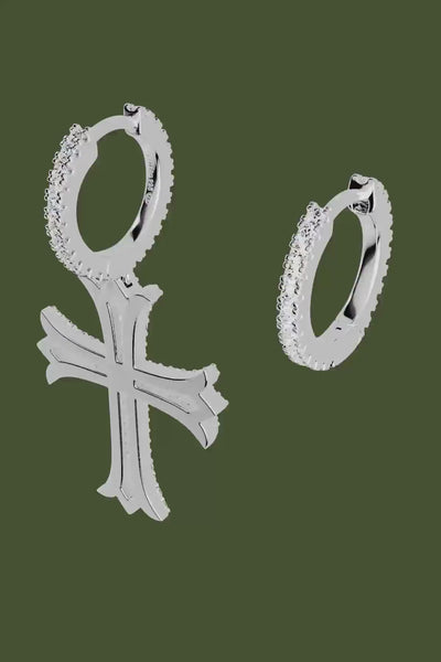 Asymetryczne kolczyki kółka z krzyżem