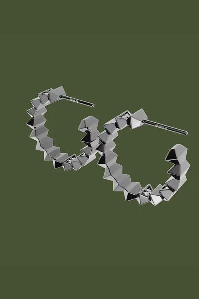 Pair of geometric hoop earrings on a white background
