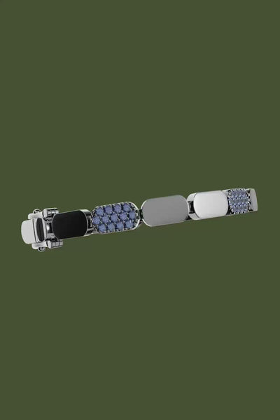 - Zapięcie: Podwójny zatrzask i zapięcie dociskowe. Otwórz podwójny zatrzask, naciśnij widoczną część nad zapięciem i lekko pociągnij bransoletkę, aby ją otworzyć.