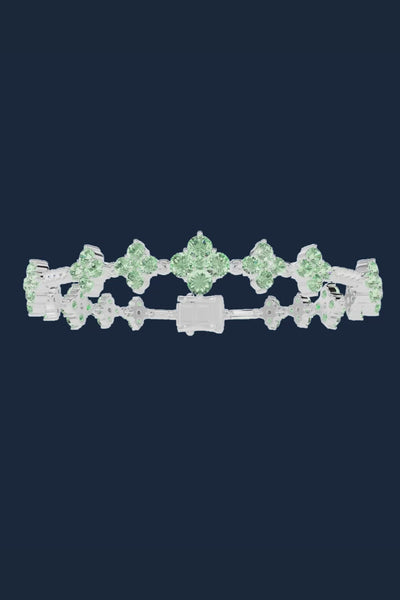 Bransoletka w delikatnym zielonym pastelowym odcieniu odzwierciedla przejrzyste i żywe barwy wiosny. Ten ręcznie wykonany wzór pavé uosabia elegancję i nowoczesność oraz pozwala na prześwitywanie światła, tworząc promienny efekt.