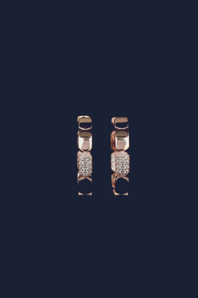 These earrings made with APM Alloy and 18k rose gold plated are microset with white cubic zirconia.