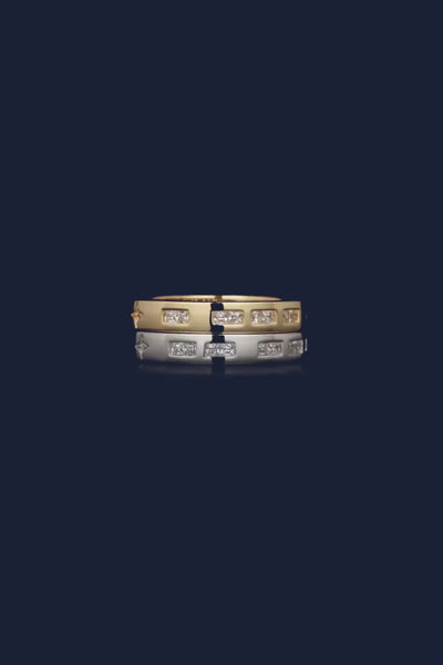 Rings APM Monaco: two stacked rings, yellow gold and white gold, white cubic zirconia, one with MOI engraving.
