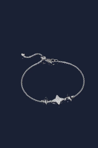 这款手链采用纯银手工制成,并微镶了白色合成立方氧化锆。