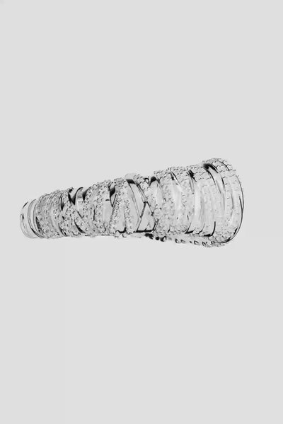光面純銀與密鑲工藝完美交融,呈現質感與光澤的優雅平衡。多元搭配的設計理念,這款手鐲詮釋現代珠寶的雋永型格。