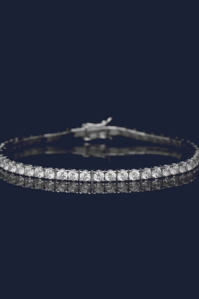 這款手鍊採用純銀手工製成,微鑲了白色氧化鋯石。