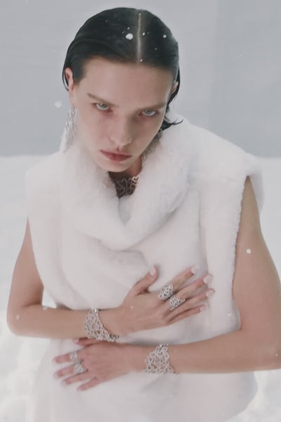 每件珠宝作品都镶有约 300 颗宝石,主要材质是氧化锆石或淡水珍珠。我们使用的 925纯银也都主要来自可回收资源。